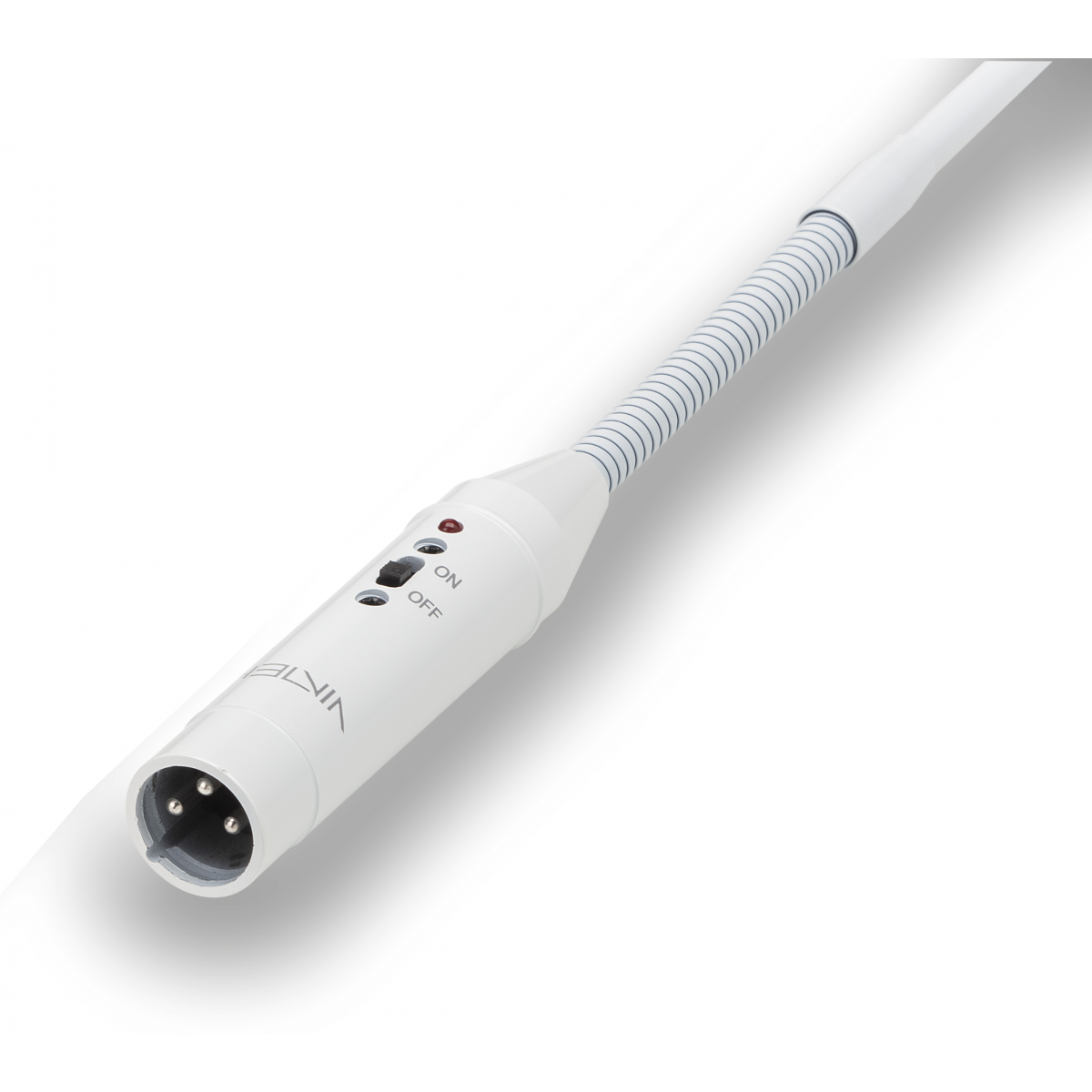 Bílý kardioidní elektretový mikrofon na husím krku Délka 55 cm (21,6 palců), bílé provedení Přepínač s LED indikátorem Určeno pro vysoce kvalitní záznam zvuku na schůzích a konferencích Referenční vzdálenost pro snímání zvuku 30–40 c...