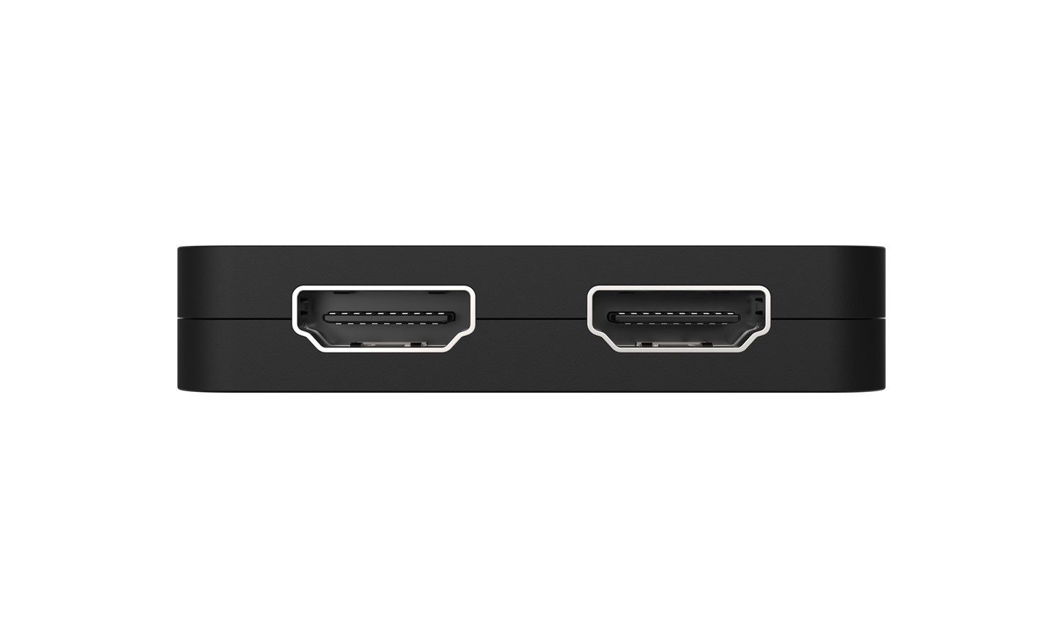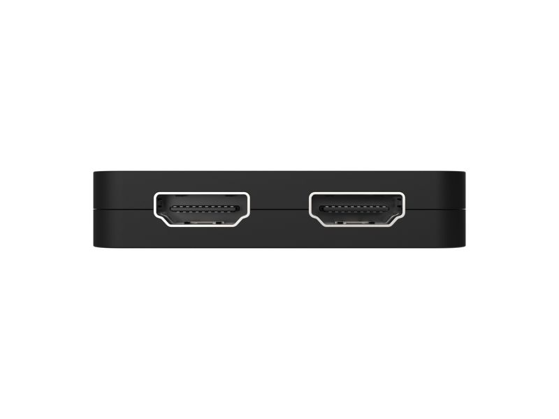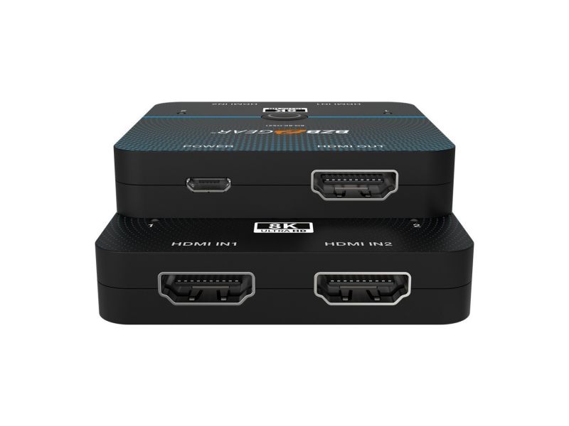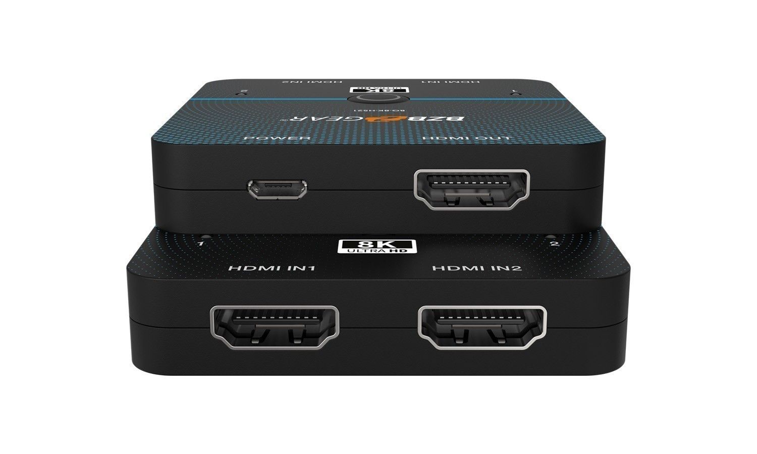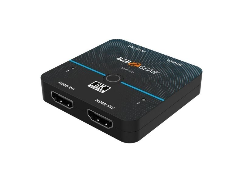 HDMI přepínač typu 2×1, který umožňuje připojit dvě HDMI 2.1 zařízení k jednomu displeji (TV, monitoru nebo projektoru) a snadno mezi nimi přepínat.