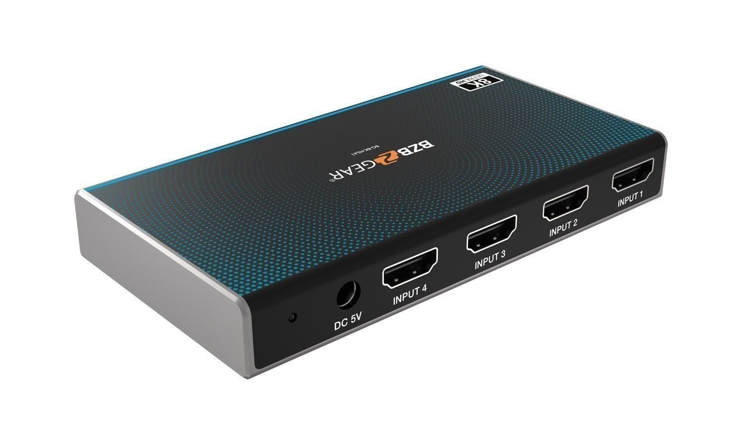 HDMI 2.1 přepínač typu 4x1, který umožňuje připojit až čtyři HDMI zařízení k jednomu zobrazovacímu zařízení (TV, projektoru nebo monitoru) a pohodlně mezi nimi přepínat.