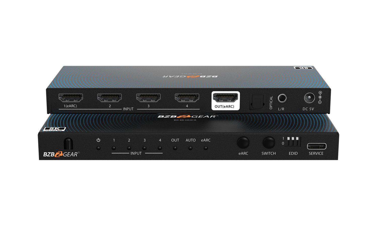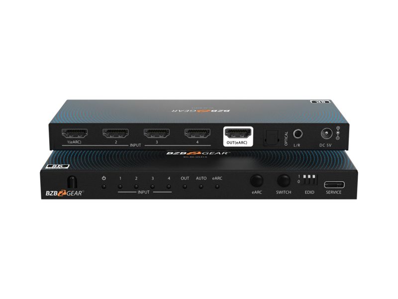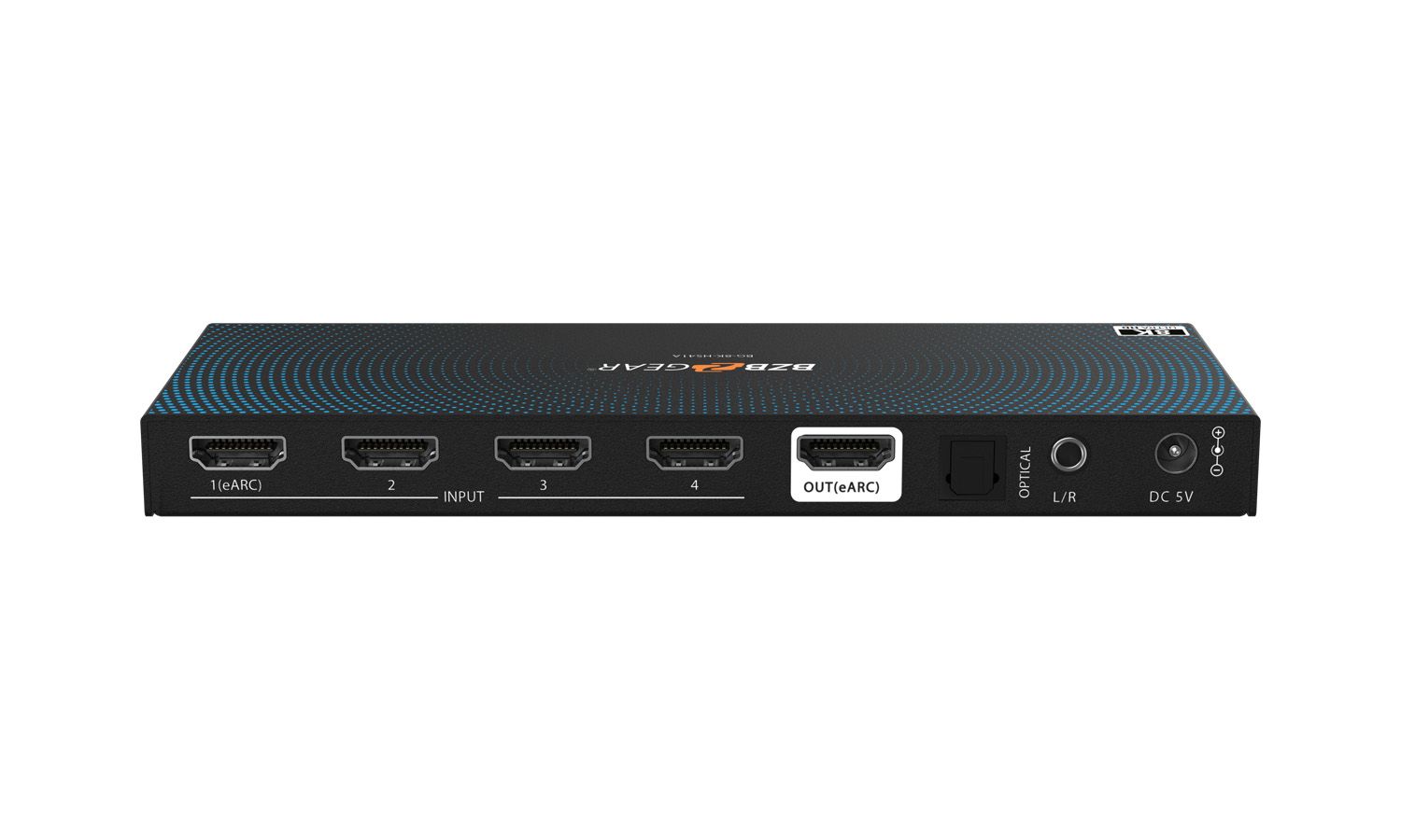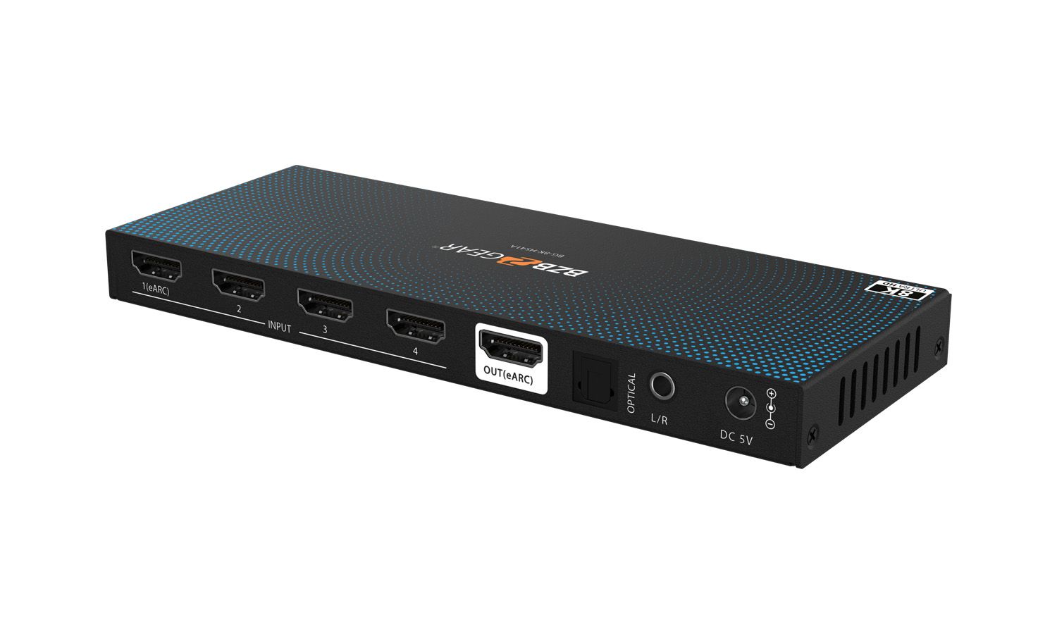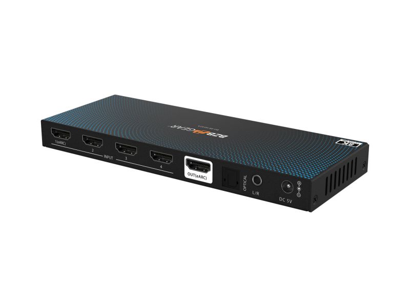 HDMI 2.1 přepínač 4x1, který umožňuje připojení až čtyř HDMI zařízení k jednomu výstupu a navíc nabízí integrovanou funkci audio de-embedding pro oddělení zvukového signálu.