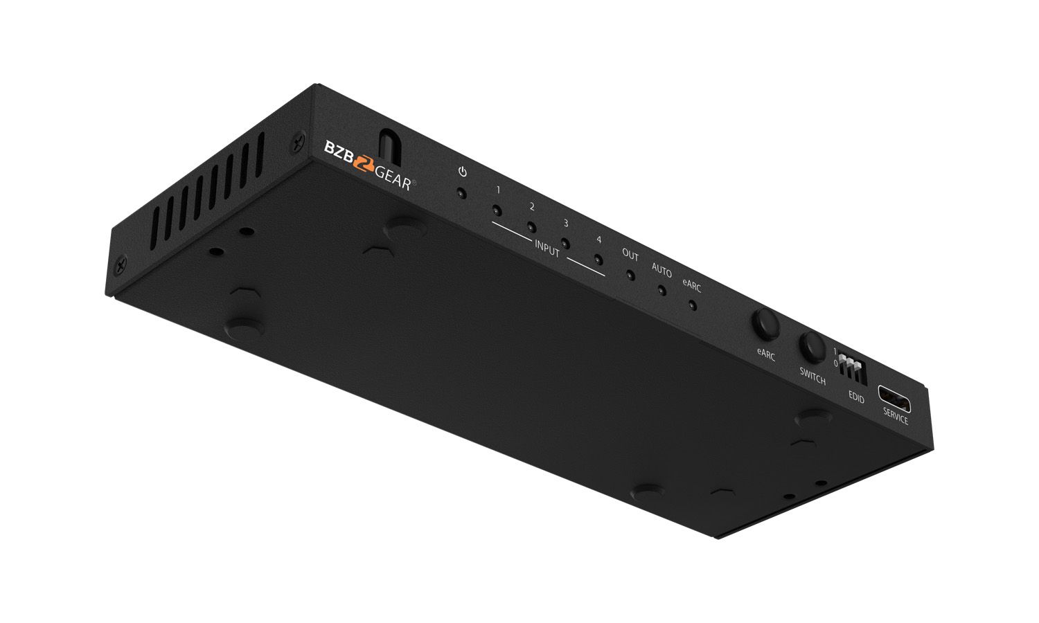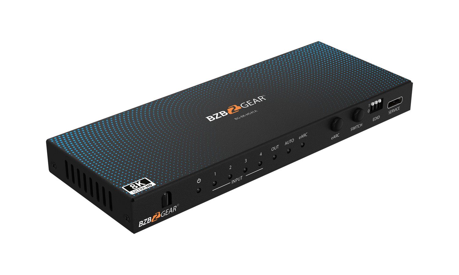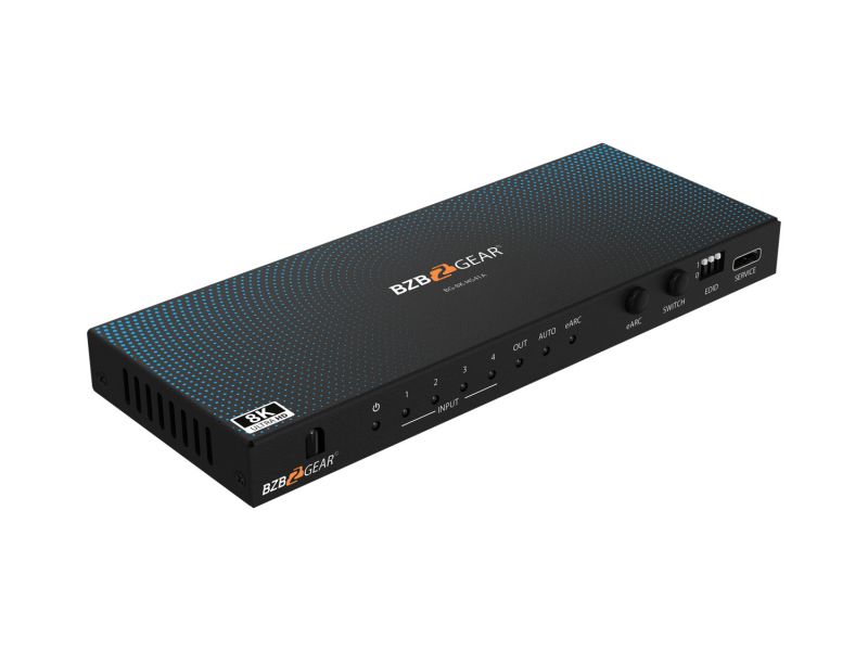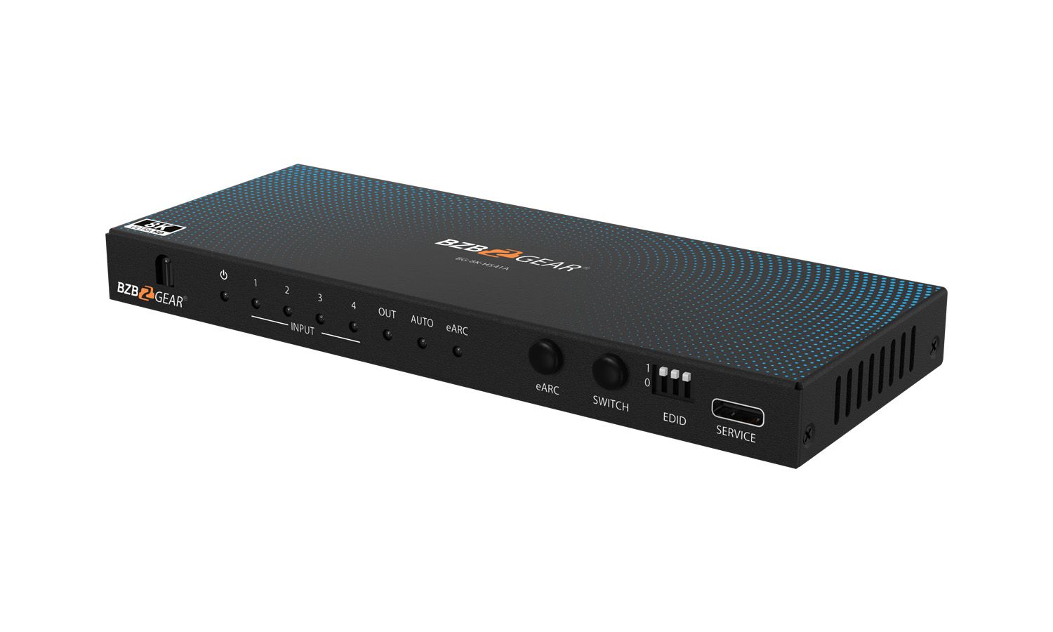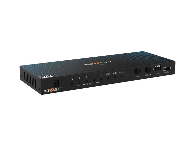 HDMI 2.1 přepínač 4x1, který umožňuje připojení až čtyř HDMI zařízení k jednomu výstupu a navíc nabízí integrovanou funkci audio de-embedding pro oddělení zvukového signálu.