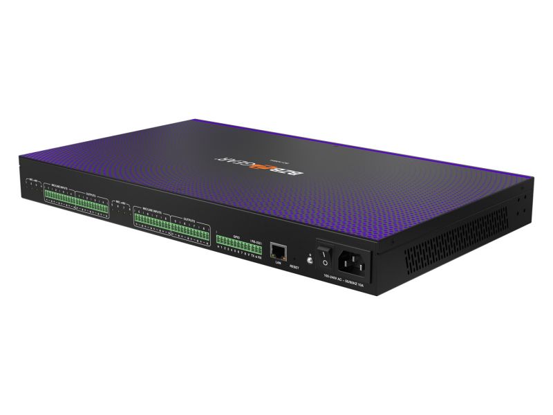 Součástí je 8 programovatelných portů GPIO, které umožňují propojení se světly, spínači, alarmy nebo jinými systémy podle potřeby. Nastavení probíhá prostřednictvím intuitivního webového rozhraní nebo přes síť LAN.