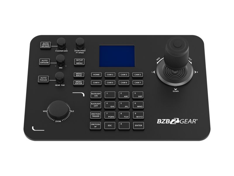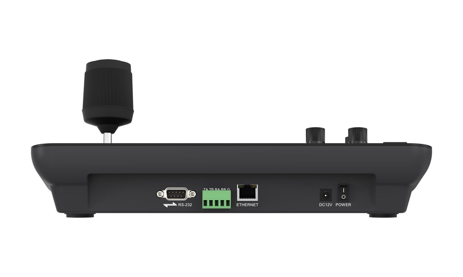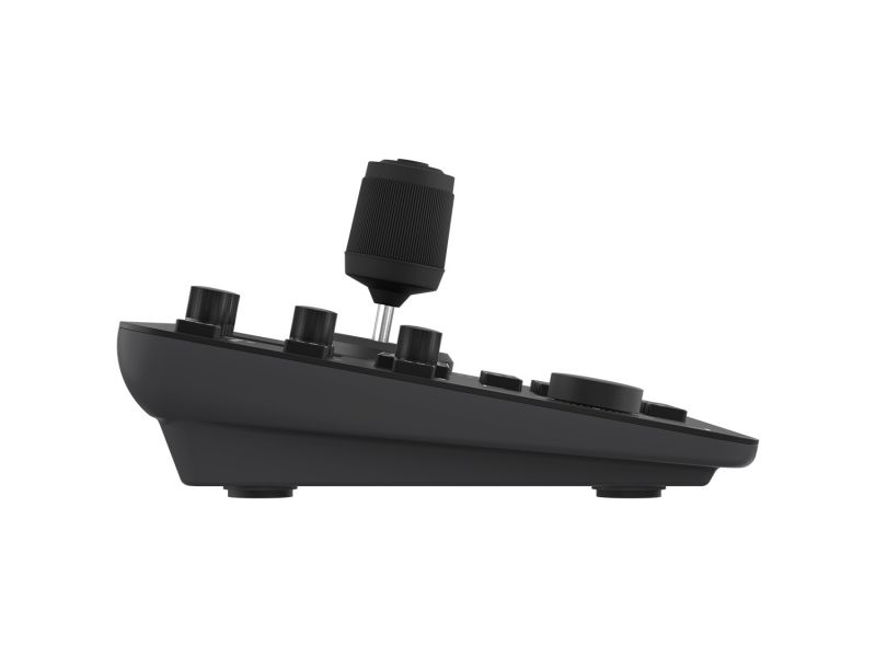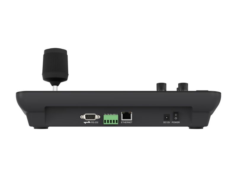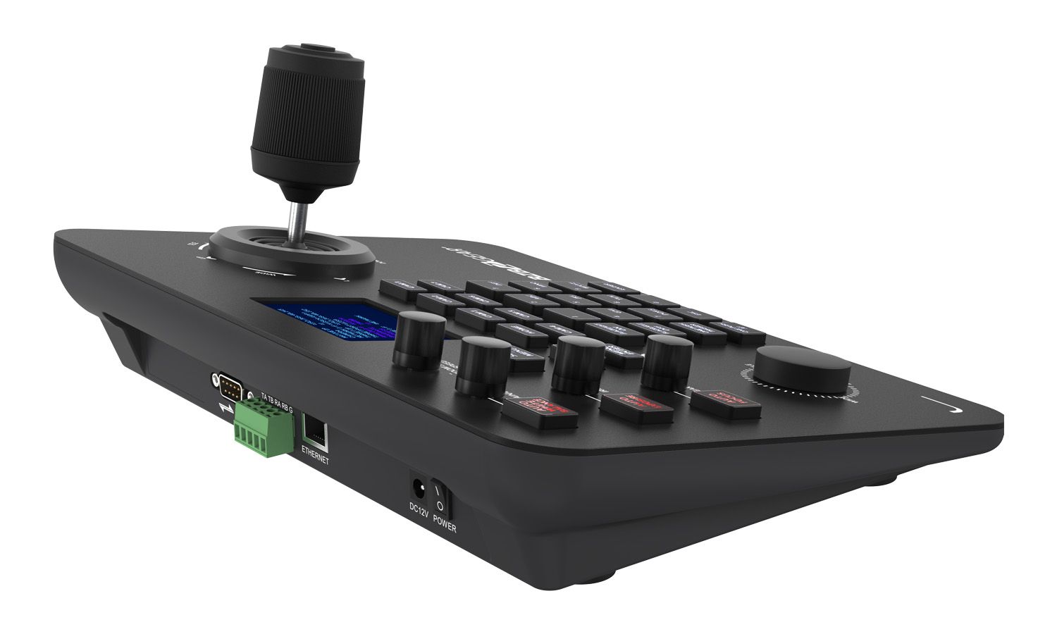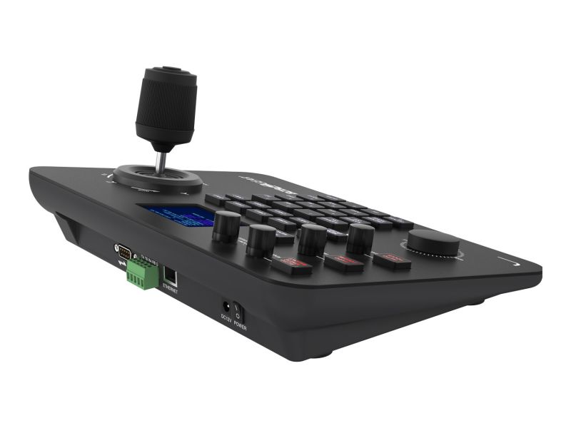 Pokročilý joystickový ovladač navržený pro efektivní a přesné ovládání kamer PTZ v profesionálních instalacích. Podporuje protokoly IP (přes síť LAN s PoE) i tradiční sériová připojení (RS232, RS422, RS485), takže je kompatibilní s většinou kamer PTZ na trhu. Řídicí jednotka podporuje nejpoužívanější protokoly včetně IP VISCA, RS-232 VISCA, Pelco-D a Pelco-P, což zajišťuje maximální flexibilitu v různých typech projektů - od jednoduchých zasedacích místností až po složitá studiová prostředí. Pohodlné ovládání zajišťuje ergonomický joystick, otočný ovladač zoomu/ostření a intuitivní tlačítka pro přepínání mezi kamerami, aktivaci předvoleb a navigaci v nabídce. Velkou výhodou je barevný displej LCD, který zobrazuje aktuální nastavení a stav připojení.