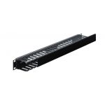 Káblový kanál do racku, 1 U pre horizontálne vedenie káblov do 482 mm (19") rackov, napr. RACK-42NV, RACK-33NV, RACK-21NV, RACK-15NV. Kovový rackový panel, čierna prášková úprava (štandard RAL 9005) Panely s oválnymi otvormi pre vedenie káblov spredu do...
